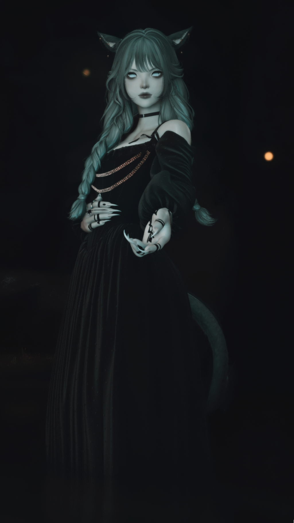 Despite her spacey expression and the constitution of one a breath away from their last, something vile dwells behind her heavy wards, unsated and agnozing. Her dreams are haunted by fel whispers and rot, while her dense aether only leads to further questions. Those deeply attuned to it may find the muddied, earthy stench of the Shroud that festers beneath the girl's strangely dewed skin.Can you feel the weight of its presence, its hunger?